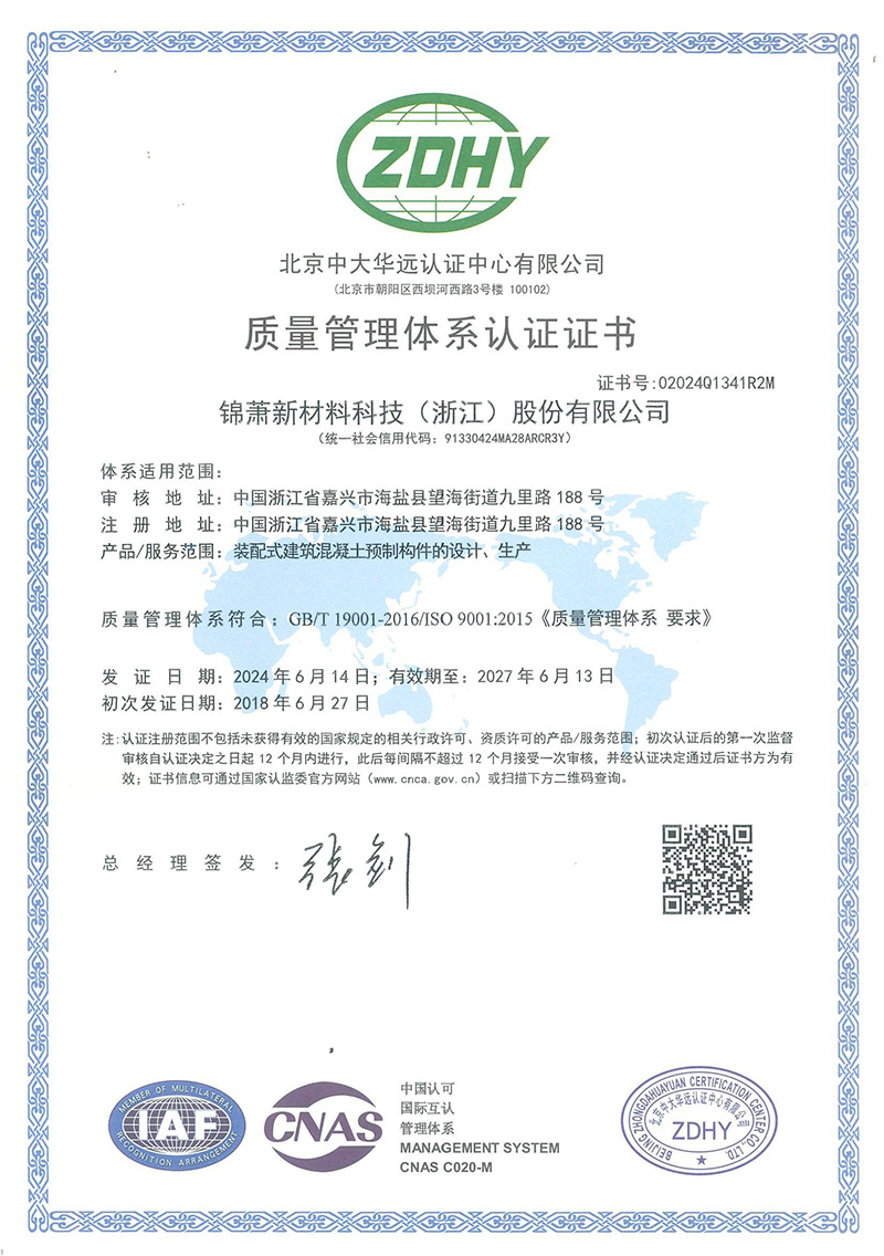 質(zhì)量管理體系認證證書